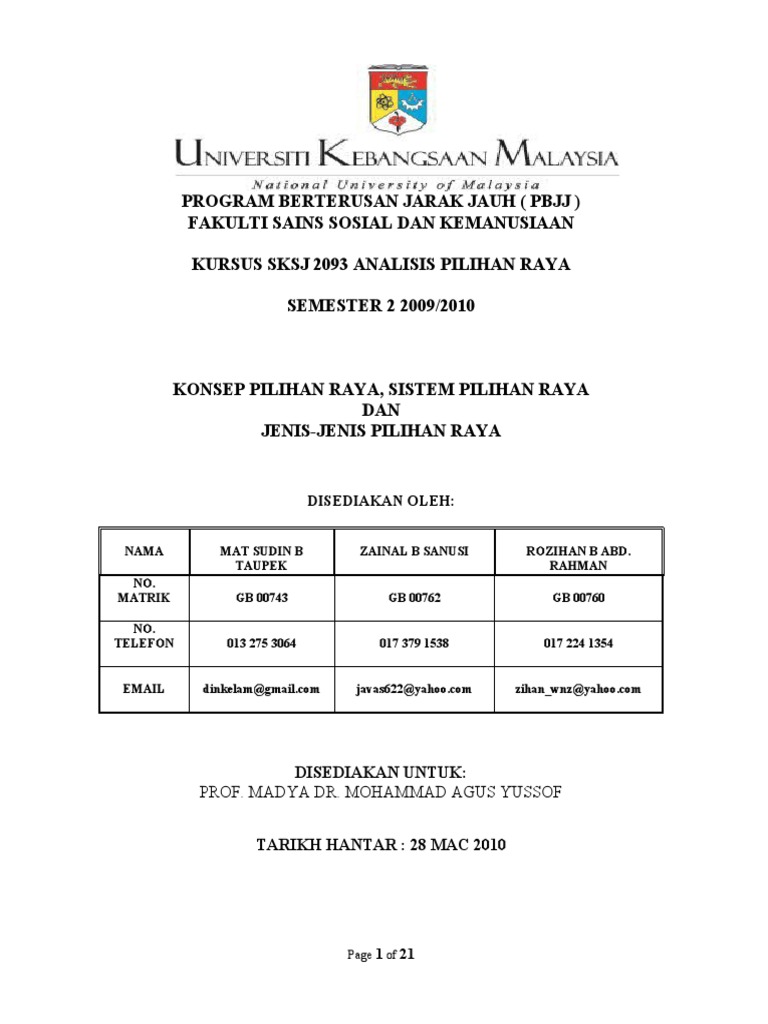 Esei Analisis Pilihan Raya Kumpulan Pdf